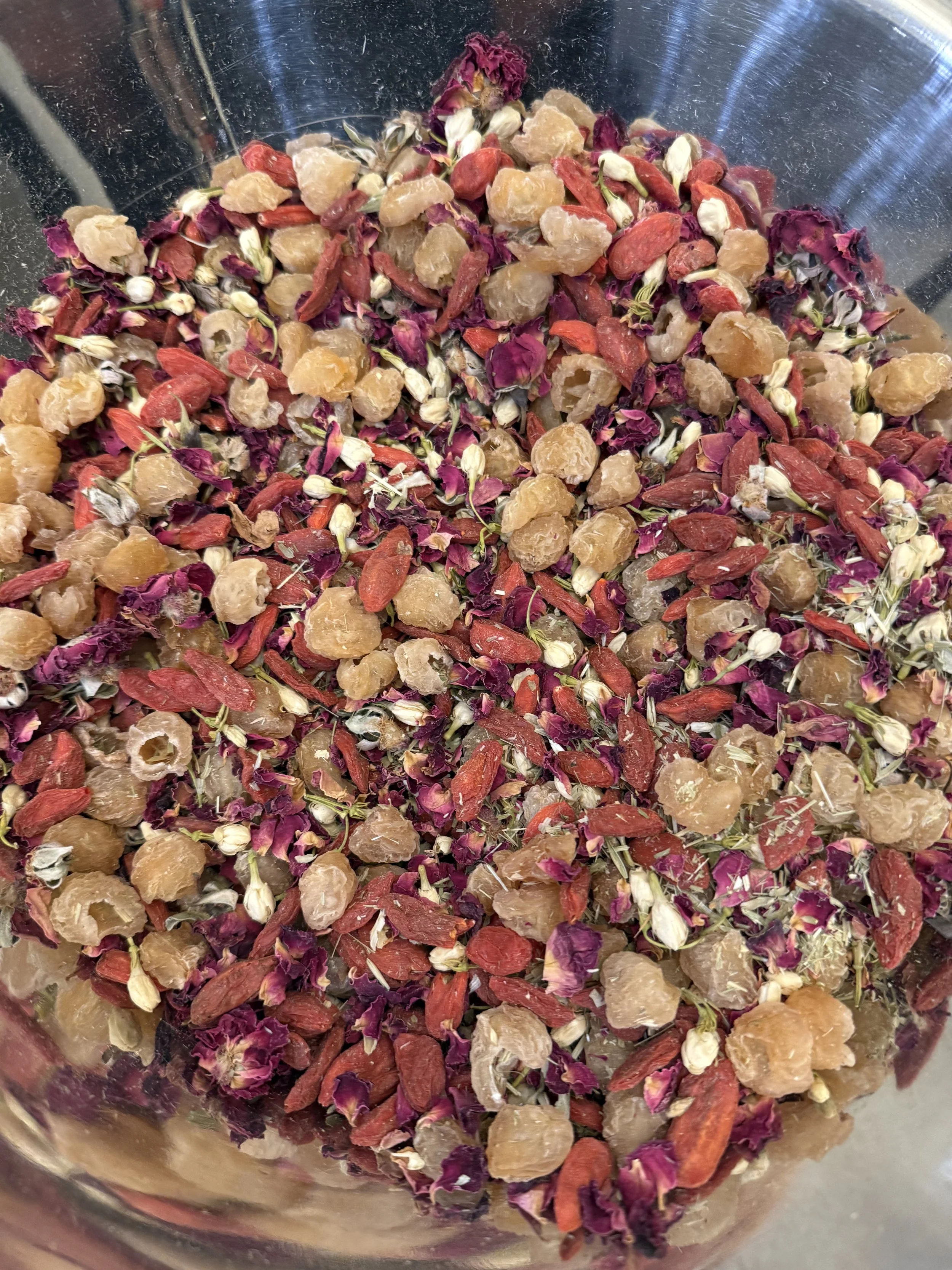 Red Rose Petal, Jasmine Flower, Longan, Goji Berry, Oat Straw