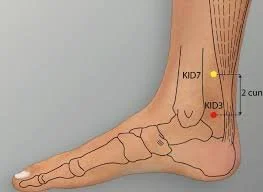 Location: On the inner ankle, in the depression between the Achilles tendon and the ankle bone.